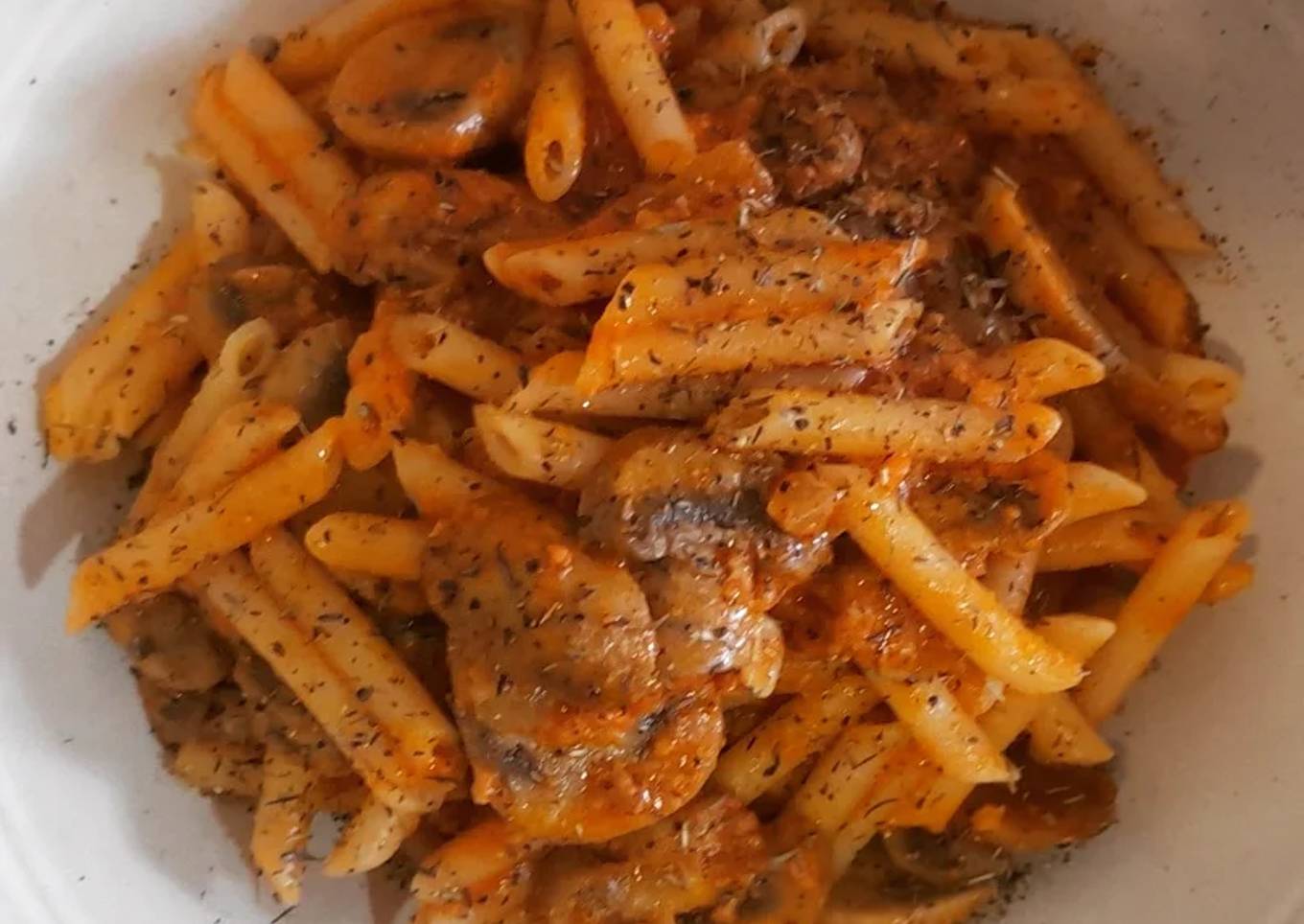 Macarrones con champiñones y salsa cremosa de sobrasada
