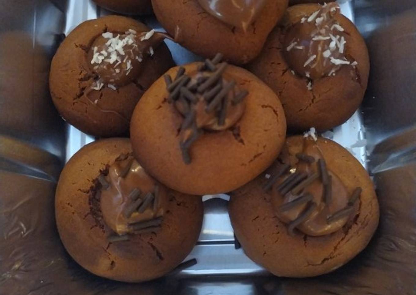 - Rellenamos los agujeros con nocilla y le ponemos por encima fideitos de chocolate, bolitas de colores, coco rallado, etc... y listo para servir 😋