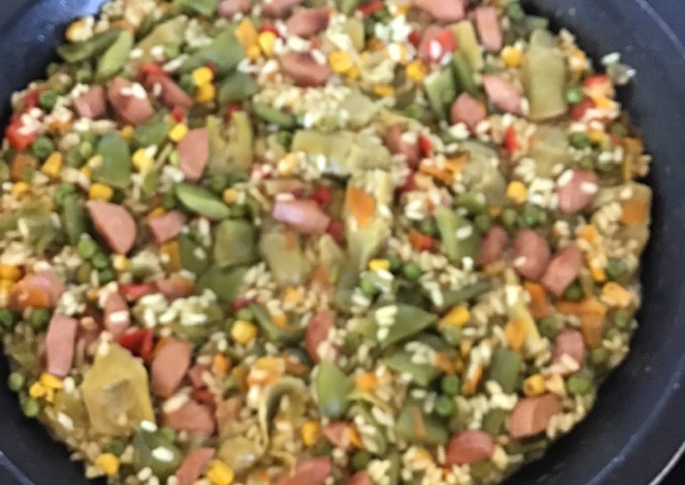 Steps to make to make Arroz con verduras y salchichas Frankfurt